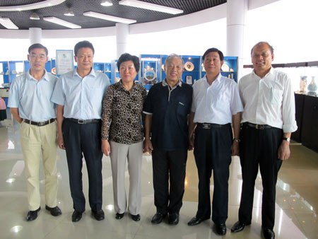 9月8日下午,外交部原部长李肇星在市委副书记孙孺声,市委常委、宣传部部长祁维华,县委副书记佘洪烈等领导的陪同下来海洋贝瓷参观指导工作。董事长郭春森、总经理郭云蛟陪同参观人员参观了公司展厅“海玉馆”。董事长郭春森介绍了海洋贝瓷产品的形成过程及其特点,郭总讲到,海洋贝瓷产品是利用贝壳烧制瓷器,贝壳的主要成分为碳酸钙,碳酸钙可以提高坯体的半透明度,增加坯釉间的结合强度。海洋贝瓷具有健康、环保的特点,“薄如纸、白如玉、声如磬”的海洋贝瓷具有极高的艺术欣赏价值。海洋贝瓷是上海世博会特许生产商之一,在上海世博会上展览的海洋贝瓷产品赢得了大家的一致好评。