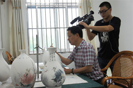 陶瓷艺术品的创作对于王先生来讲并不陌生,他曾经在西安等多个地方进行过创作。就海瓷艺术品创作和其他陶瓷艺术品创作的区别,有着自己独到的见解。他认为海瓷艺术品在创作方面具有很多优势,这些优势已经转化为海瓷艺术品的核心竞争力。一是,不是宣纸却胜于宣纸的创作瓷质。由于胎瓷中特有成分使其表面具有极强的润性,能够很好的表现国画的效果,在创作的过程中能够很好的发挥创作者得艺术水平;二是,海瓷艺术创作色彩丰富,适合各种题材的表现,创作起来得心应手;三是手感好、吸墨快、容易出效果。