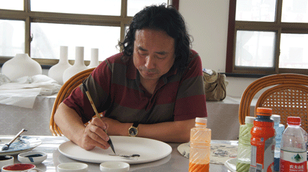 “好瓷的标准是白如玉、薄如纸、声如磬,海瓷非常适合这样的标准,我非常喜欢。”这是高职画师翁羽对海瓷的第一印象。 一次机缘让翁羽接触到了海瓷艺术,对海瓷充满了浓厚兴趣,便前来创作海瓷作品,他想把自己的花鸟画小品转移到海瓷上,看看呈现的是什么样的效果。翁羽讲到:“海瓷艺术是艺术性与工艺性的完美结合,我正在寻找一个点,把我的作品和海瓷结合起来,把作品搞的更精一些,我也正在尝试创新,创作更多有意思有价值的作品。我对自己很有信心,我要让自己的海瓷作品留给大家‘美’的享受。”最后,翁羽讲到:“现在正是文化产业大发展的好时机,海瓷艺术要抓住这样的契机,与文化产业发展相吻合,创造更适合海瓷发展的市场。祝愿海瓷艺术有更加辉煌的明天。” 画家简介: 翁羽:男;号一初,1955年生,原名刘笑眉,斋名潮汐阁,河北山海关人。北京大品画院理事,北京国画艺术家协会会员,北京丰台美术家协会理事,中国国家画院高研班高卉民工作室画家,现今为高职画师。